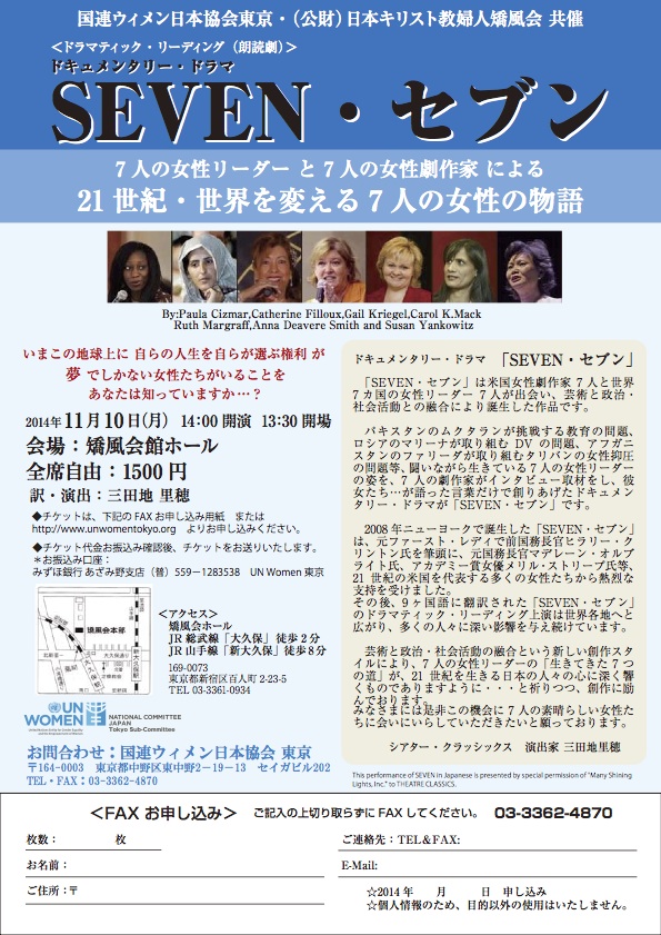 UN Women National Committee and KYOFUKAI (Japan Christian Women’s Organization) will present SEVEN performed by the Theatre Classics Company