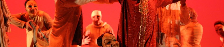 SEVEN is most often is done with simple, straightforward, elegant staging to accentuate the documentary quality of the play. And sometimes it is simply a reading where the actors don’t even move. But sometimes….sometimes….sometimes a director and her collaborators get a huge idea and SEVEN becomes a spectacular production with 31 actors, masks, movements, projections, lights. That’s what Tracy Williams did at Mira Costa College in San Diego for the production that ran from October 1 – 11, 2015. Here’s just a quick view of some of the photos from the amazing production. More to come soon.