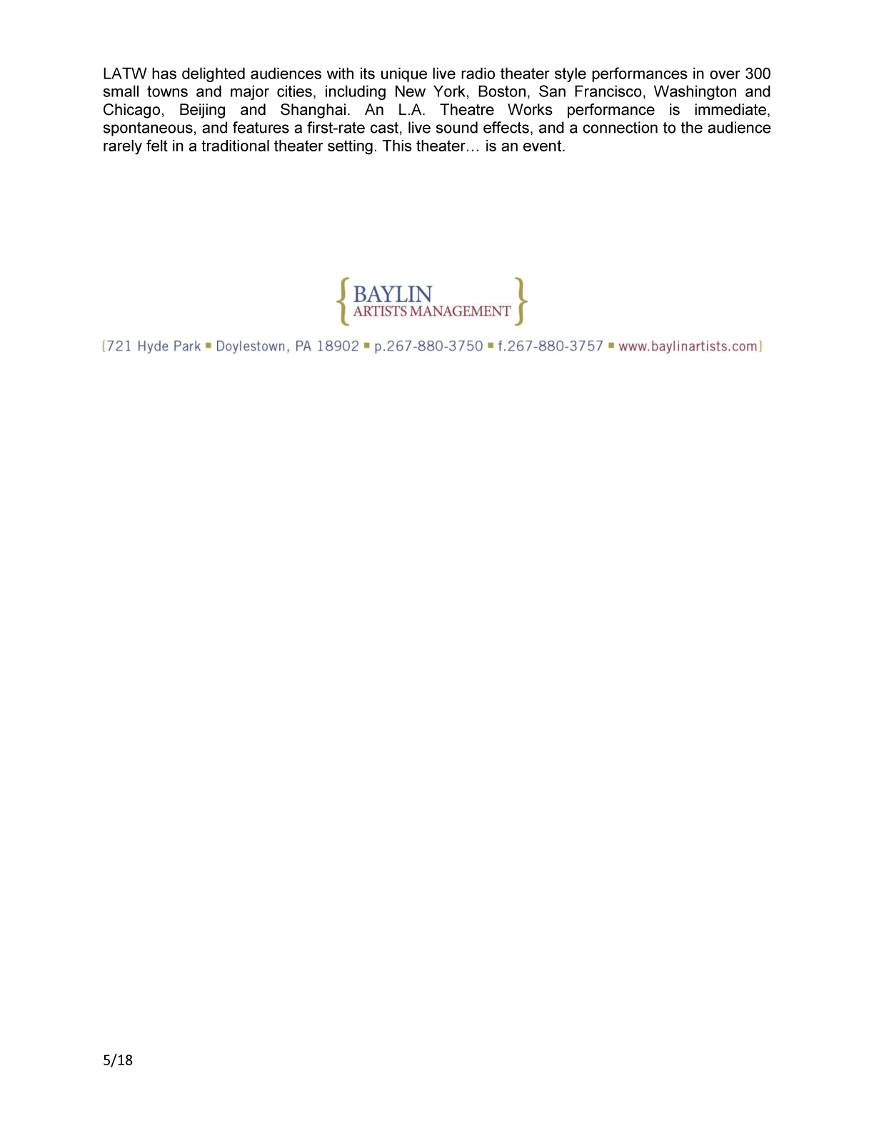 SEVEN will be the 2019-20 touring production of LATW!